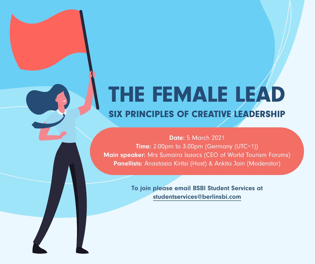 BSBI invites you to an interactive workshop with Mrs Sumaira Isaacs, CEO of World Tourism Forums, who will talk about the 6 principles of creative leadership to support and encourage female leadership.