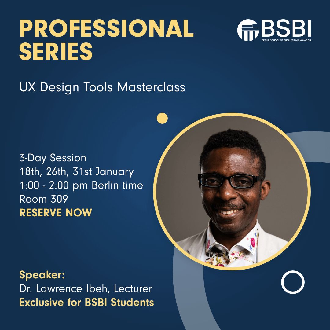 UX design involves aesthetics, design, usability and function. It addresses the need for a more meaningful and effective customer journey. This master class series will give an overview of the UX/UI Designs and UX/UI Research profession. The series will be led by Dr Lawrence Ibeh, Lecturer at BSBI.