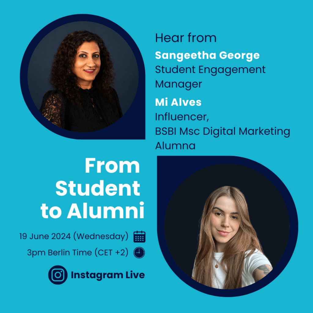 Mi Alves, a proud BSBI alumna, will be sharing her journey, experiences, and insights gained during her time at BSBI. From academic challenges to personal growth, Mi’s story is both inspiring and informative for current and prospective students alike.