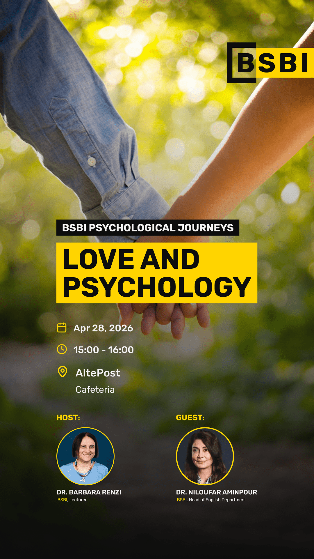 The BSBI Psychological Journeys session presents Love and Psychology, exploring the emotional, cognitive, and behavioral dimensions of love. This engaging event examines how psychological theories explain attraction, attachment, and relationship dynamics, offering insights into why we form connections and how they evolve over time. Participants will reflect on different expressions of love, from romantic to interpersonal bonds, and their impact on well-being and identity. Ideal for students and anyone interested in human behavior, the session provides a thoughtful perspective on one of the most profound and complex aspects of human experience.