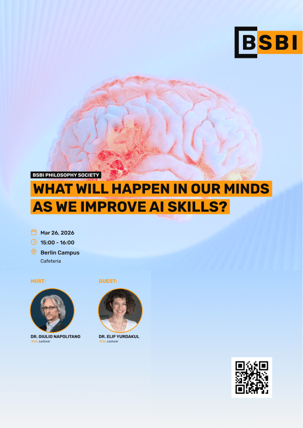 This event explores the philosophical and cognitive implications of increasingly relying on artificial intelligence in learning, work, and decision-making. The discussion will examine how developing AI skills may influence human thinking, creativity, problem-solving, and knowledge acquisition. Participants will reflect on questions about human cognition, intellectual independence, and the evolving relationship between human intelligence and artificial intelligence in modern society.
