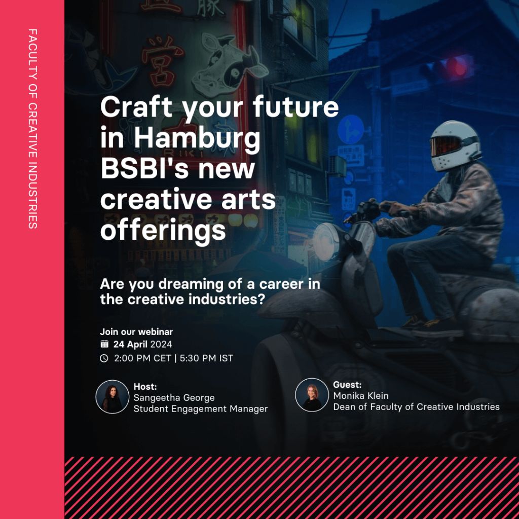 .We welcome you to join us in our upcoming webinar, “Craft your future in Hamburg: BSBI’s new creative arts offerings”, during which we will be covering all the creative programmes offered by BSBI in partnership with UCA.