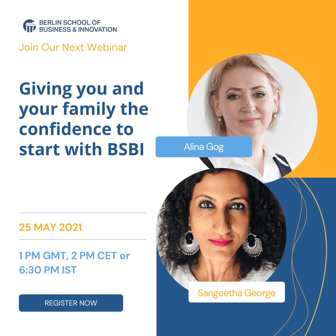 Exclusive Fireside Q&A Webinar on 25 May, with Alina Gog, our Chief Operating Officer. We will discuss the support offered to prospective students and inform you about vital information on BSBI. This Q&A is the perfect opportunity for prospective students and parents to engage with us about our student support.