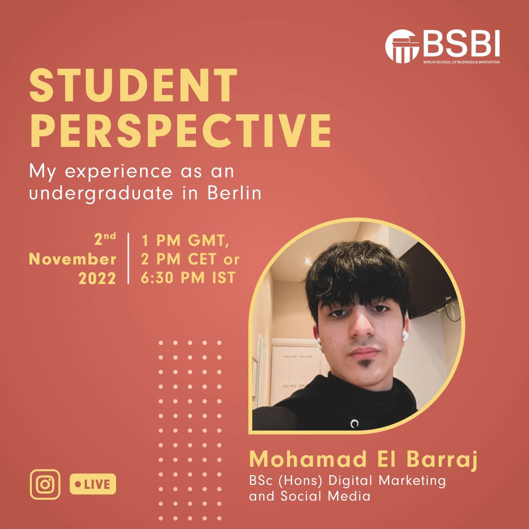 Tune in to our Instagram Live on Wednesday 2 November to hear from Mohamad El Barraj, BSc (Hons) Digital Marketing and Social Media student at BSBI.