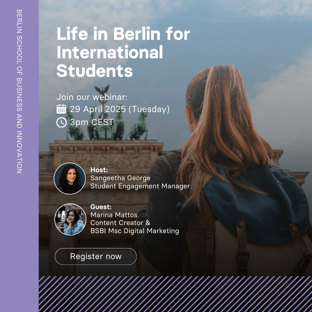 Hosted by Sangeetha George, Student Engagement Manager at BSBI, this session features insights from Marina Mattos, a Brazilian MSc Digital Marketing student and content creator, who shares how she adapted to Berlin life, embraced cultural differences and made the most of her study abroad experience.