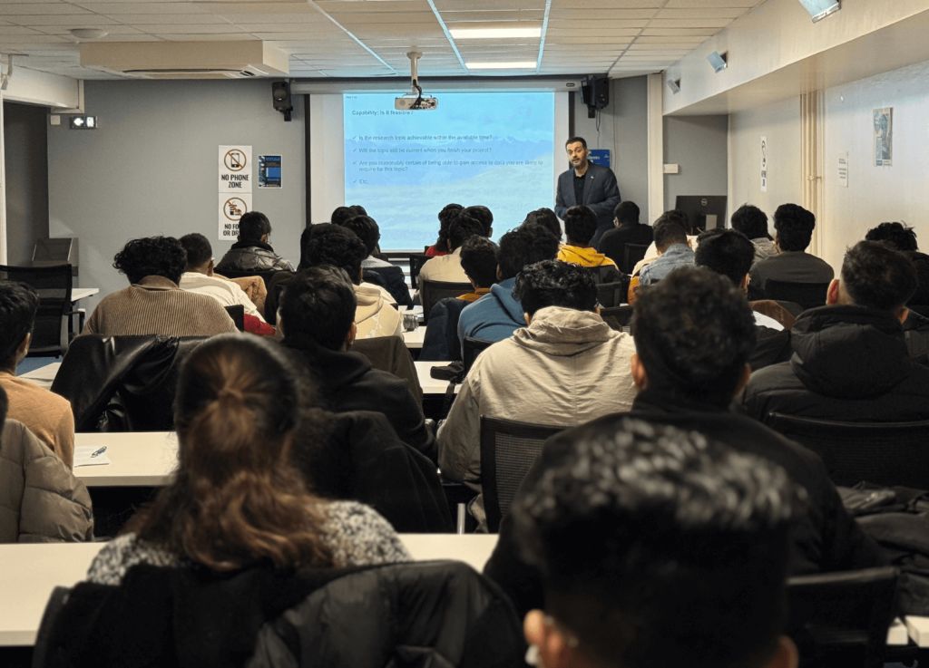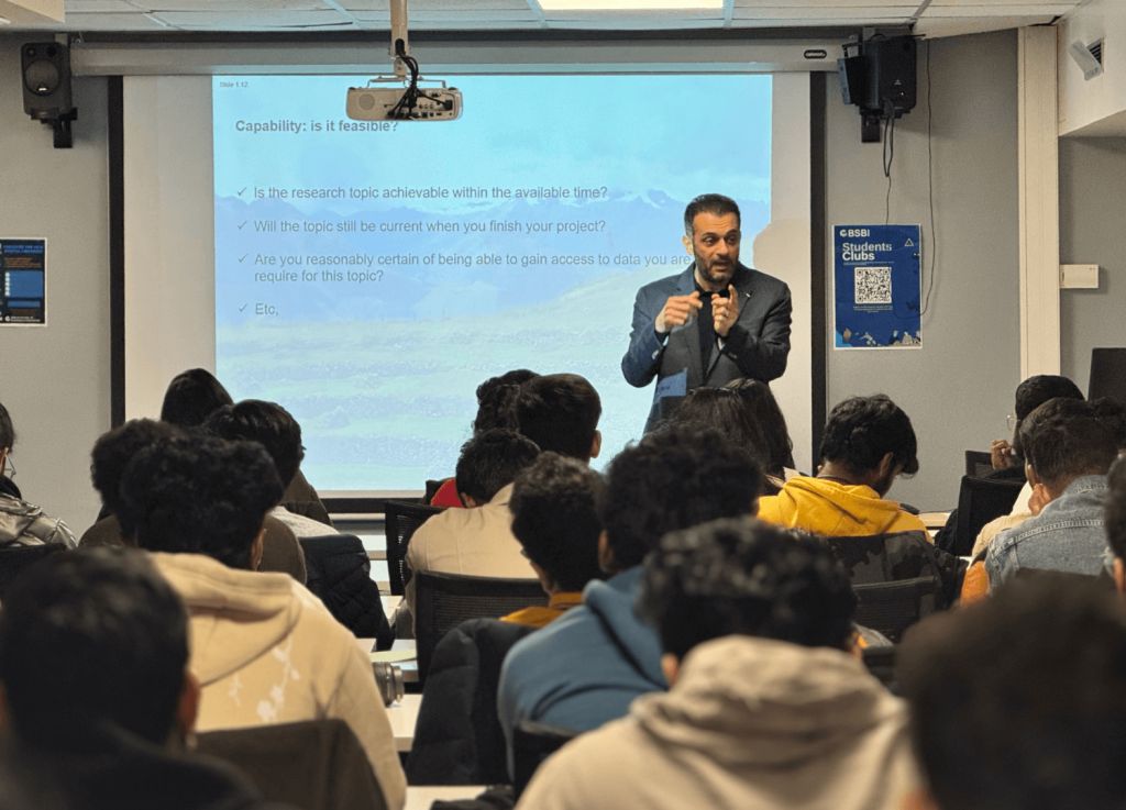 Beyond theory, the workshop provided hands-on training in data collection and analysis, including qualitative, quantitative and mixed-methods research. Students learned to determine sample sizes, test hypotheses and analyse statistical data with confidence. The sessions also reinforced BSBI’s academic standards, with guidance on applying the Harvard referencing style.