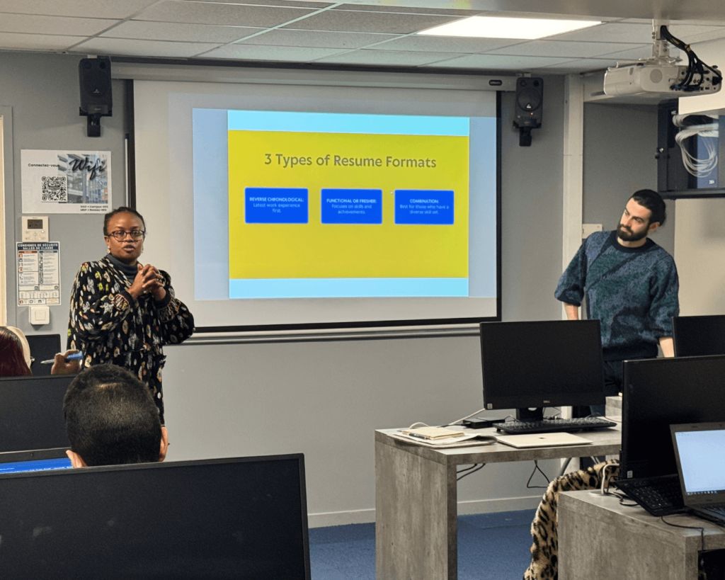 The workshop was led by Fatou Barry, Career Advisor at the BSBI Paris campus, with support from Owen Dedenys, Student Services Manager. Students gained valuable insights into current job market trends and learnt how to create CVs that stand out to employers.