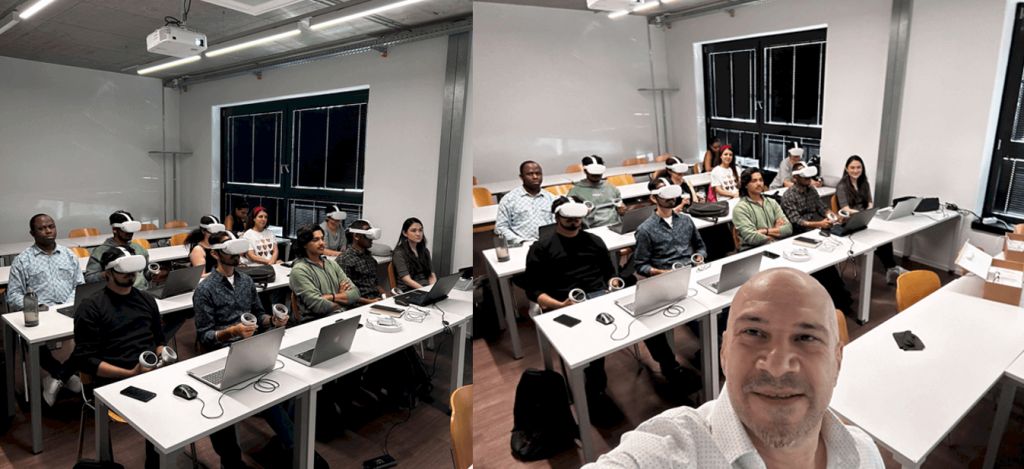 Equipped with VR glasses, the students in Hamburg immersed themselves in the virtual environment, listening to Dr. Samoylenko’s insights on the future of innovation, art, and technology. The experience was described as unforgettable, with students expressing their excitement and newfound perspectives on the creative industries.