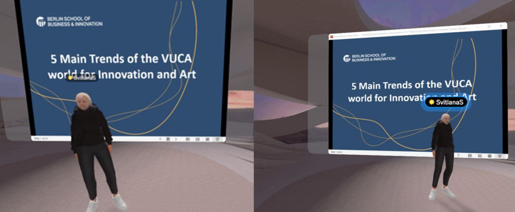 Dr. Svitlana Samoylenko’s pioneering speech on the spatial platform not only enlightened the Creative Industries MA students but also set a precedent for future virtual academic engagements across all the campuses of BSBI – Berlin, Barcelona, Hamburg and Paris.